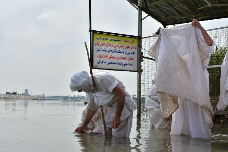 وعند باب المندي الأنيق المطل على نهر دجلة في بغداد، انتظرنا “الريشما ستار جبار حلو” رئيس الطائفة المندائية في العراق والعالم، حتى ينتهي من تعميده أبناء طائفته، لنسأله عن جذور هذه الديانة وسبب ارتدائها الثياب البيض أثناء الطقوس؛ فأجابنا “نحن من المؤمنين بالله الواحد الأحد وبأنبيائه، ومن المؤمنين بالنبي آدم عليه السلام وشيت وسام بن نوح وإبراهيم الخليل وأخيرا بالنبي يحيى بن زكريا وهو آخر أنبيائنا؛ ومنذ القدم سكنّا بلاد ما بين النهرين، وتجد الكثير من تقاليد العراقيين القدماء في تقاليدنا؛ وقد تعايشنا مع السومريين والبابليين كما تعايشنا مع إخواننا من أبناء الديانات الأخرى في العراق الحديث”.