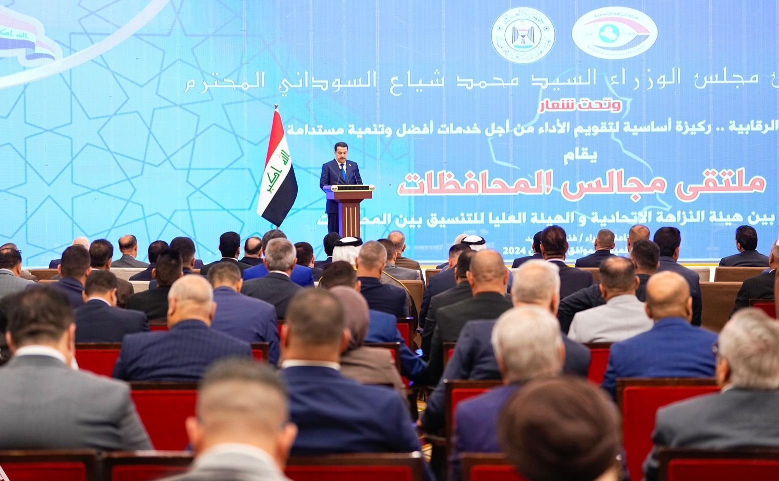 وذكر المكتب الإعلامي لرئيس الوزراء في بيان، أن “رئيس مجلس الوزراء محمد شياع السوداني، افتتح الملتقى الأول لمجالس ودواوين المحافظات، مع هيئة النزاهة والهيئة العليا للتنسيق بين المحافظات، المنعقد تحت شعار (تكامل الأدوار الرقابية ركيزة أساسية لتقويم الأداء من أجل خدمات أفضل وتنمية مستدامة)، بمشاركة الهيئات الرقابية واللجان النيابية المختصة، والمحافظين ورؤساء مجالس المحافظات، فضلاً عن هيئة المستشارين في مكتب رئيس مجلس الوزراء، والأمانة العامة لمجلس الوزراء وديوان الرقابة المالية، وعدد من الاتحادات والنقابات الحقوقية والمنظمات المحلية والدولية المعنية”.