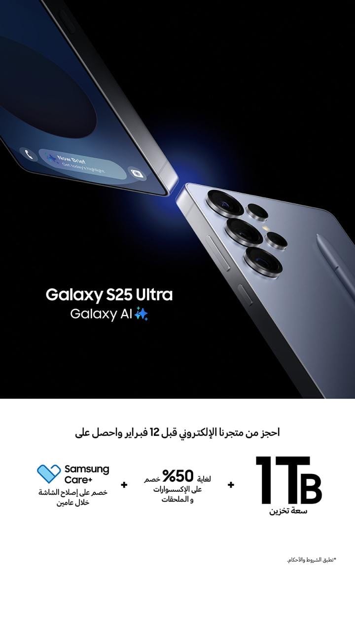 وستقدم الشركة للمشترين الأوائل من خلال متجر سامسونج الإلكتروني عروضاً مميزة تواكب تطلعات الزبائن، حيث سيحصلون على ضعف سعة التخزين، إلى جانب الاستفادة من خصومات تصل لغاية 50% على الإكسسوارات والأجهزة القابلة للارتداء، ومزايا ضمان إصلاح الشاشات لمدة عامين من الشراء مع برنامج الضمان الممدد Samsung Care+.
