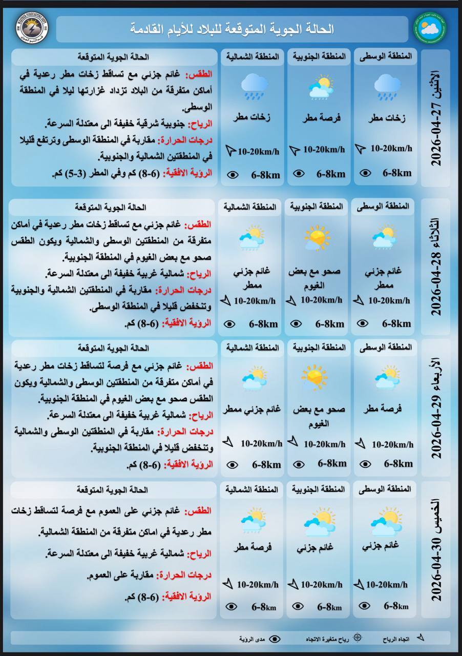 بيئة ومناخ“حالوب” في الوسط وأمطار شمالًا وجنوبًا.. حالة الطقس في العراق للأيام المقبلة إنماز نيوز26 أبريل، 2026
