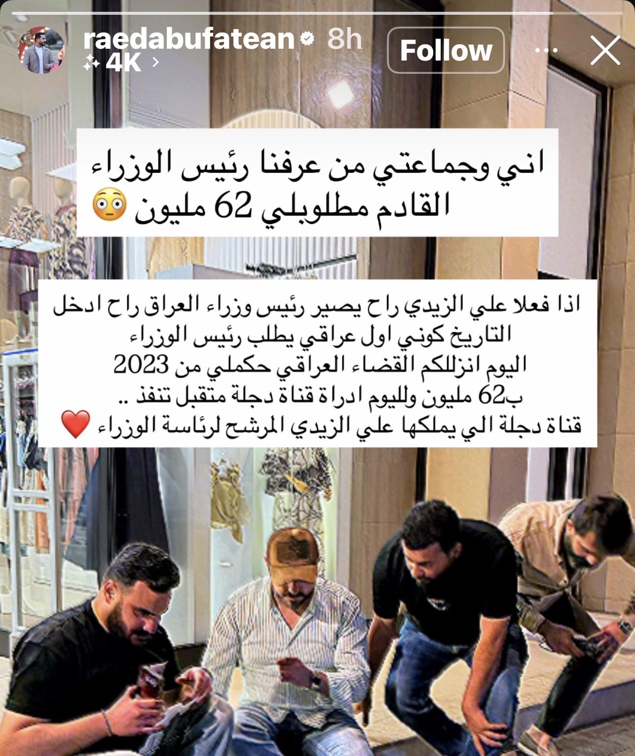 توك شوابو فتيان: اني اول عراقي يطلب رئيس الوزراء المكلف علي الزيدي 62 مليون إنماز نيوز28 أبريل، 2026 بغداد – شبكة إنماز نيوزكتب الشاعر رائد ابو فتيان عبر حسابه الرسمي في إنستغرام اطلعت عليه «إنماز نيوز”: اني اول عراقي يطلب رئيس الوزراء المكلف علي الزيدي 62 مليون من سنة 2023Screenshot